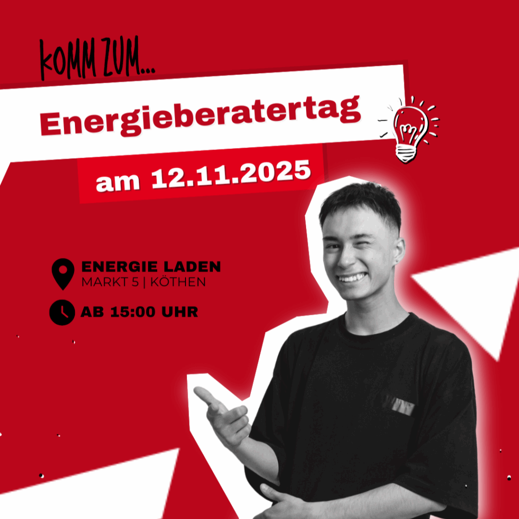 Am kommenden Mittwoch, den 12.11.2025, findet unser Energieberatertag bei uns im Energie Laden am Markt statt!