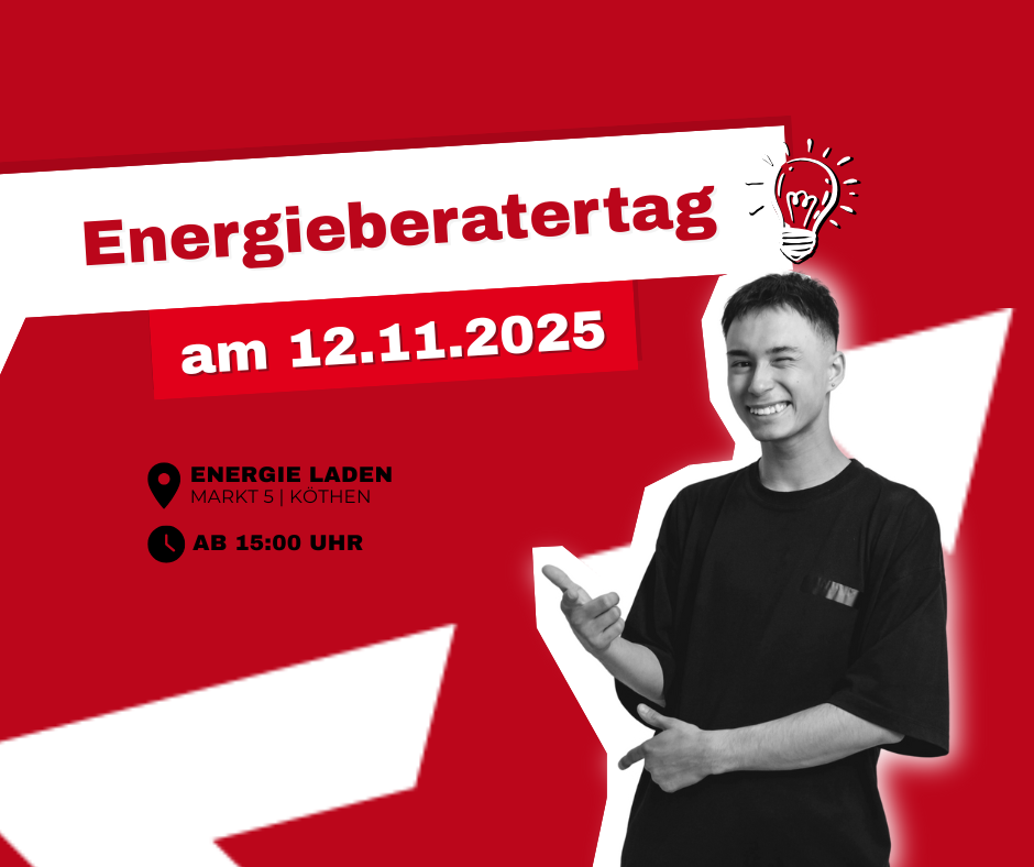 Am Mittwoch, den 12.11.2025 kümmern wir uns im Energie Laden ab 15:00 Uhr um alle Fragen zur Energie-Thematik.